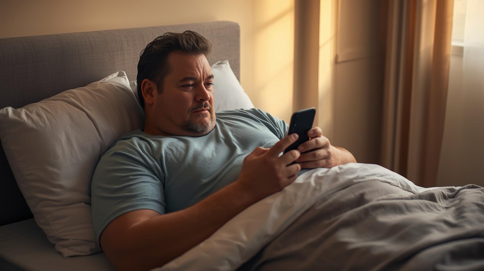 a fatman on his bed