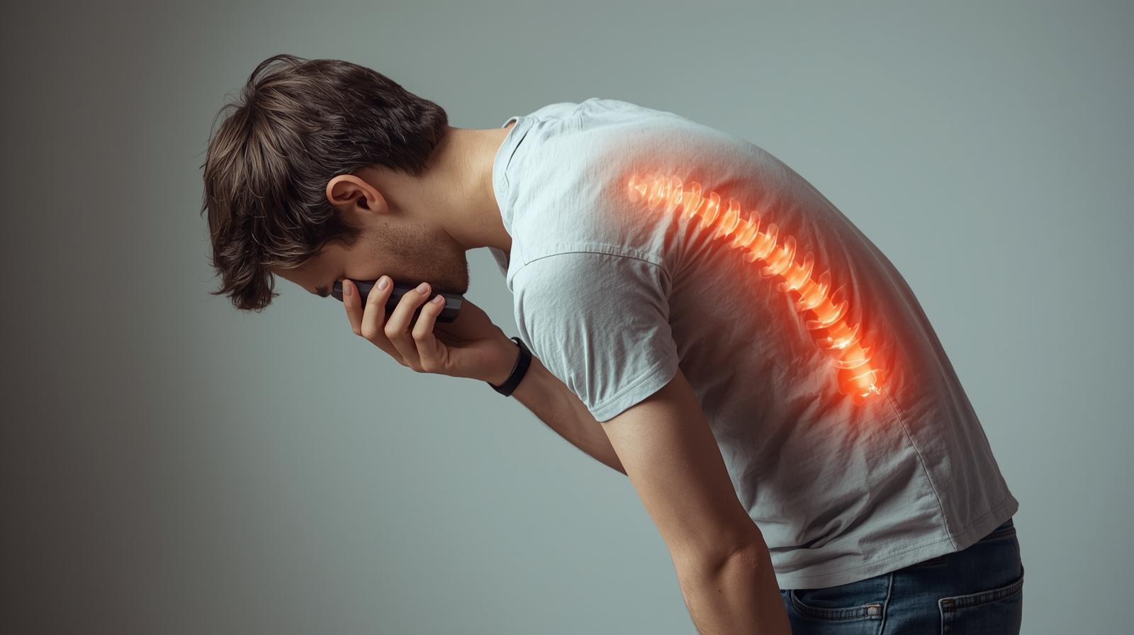 Constantly looking down at phones causes “text neck”, leading to stiffness, pain, and nerve compression in the neck and shoulders. Over time, this can limit mobility and create long-term posture issues.
